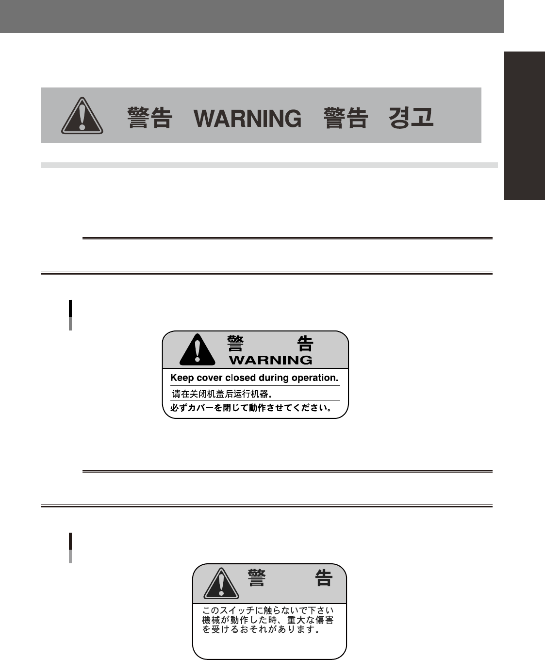 peripheral equipment. Check that the information on each warning label is clearly legible and comply with