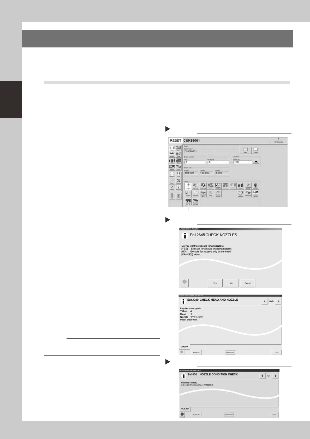 cause problems such as component mounting errors. Check for clogged nozzles with the following procedure,