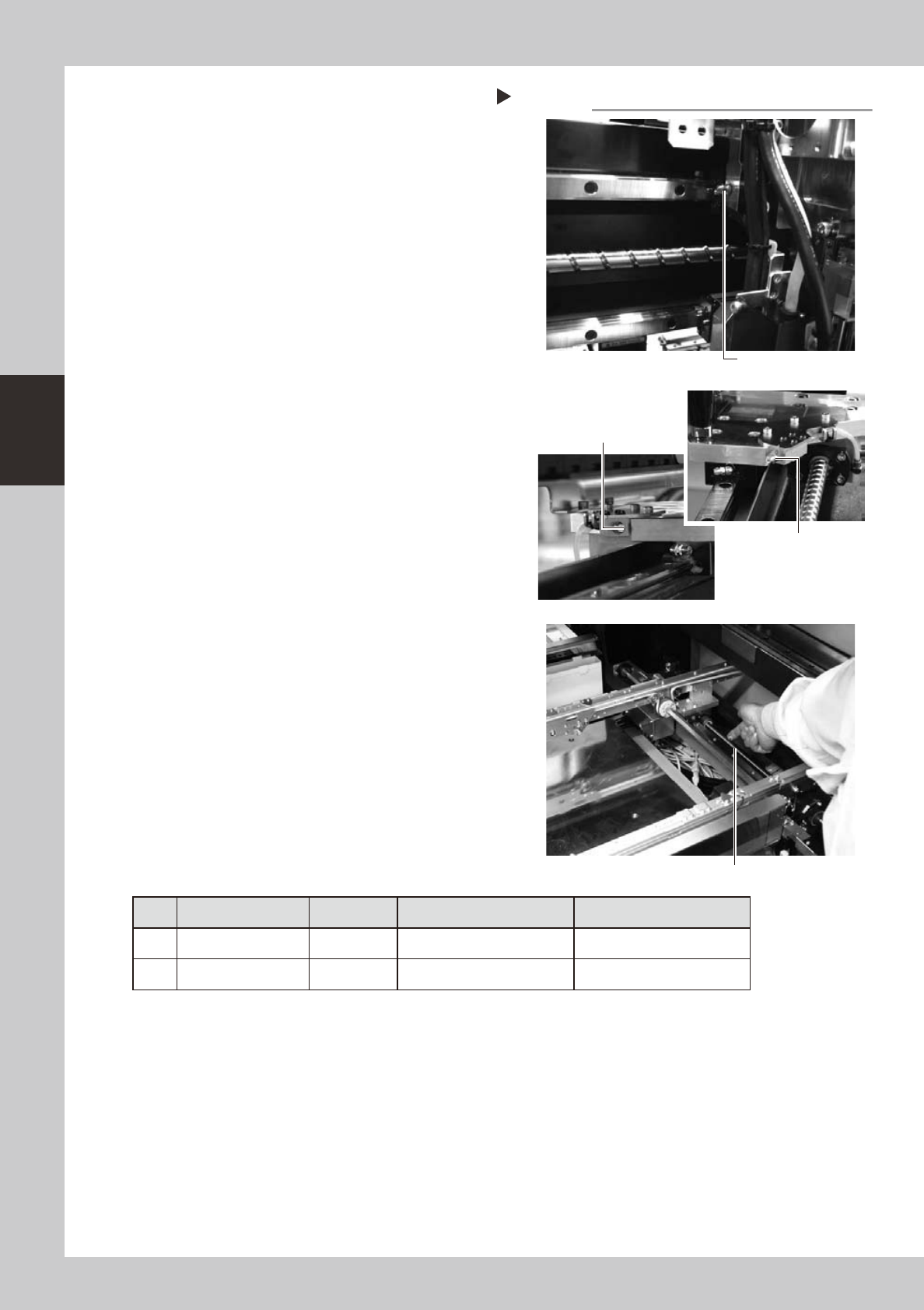 3-1 1 3 Periodic maintenance items 2.3.2 Cleaning and greasing the X, Y and W axes linear guides e 1 Pr ess the emer gency stop button. The machine must be in emergency stop to ensure safety during work. 2 Clean the line…