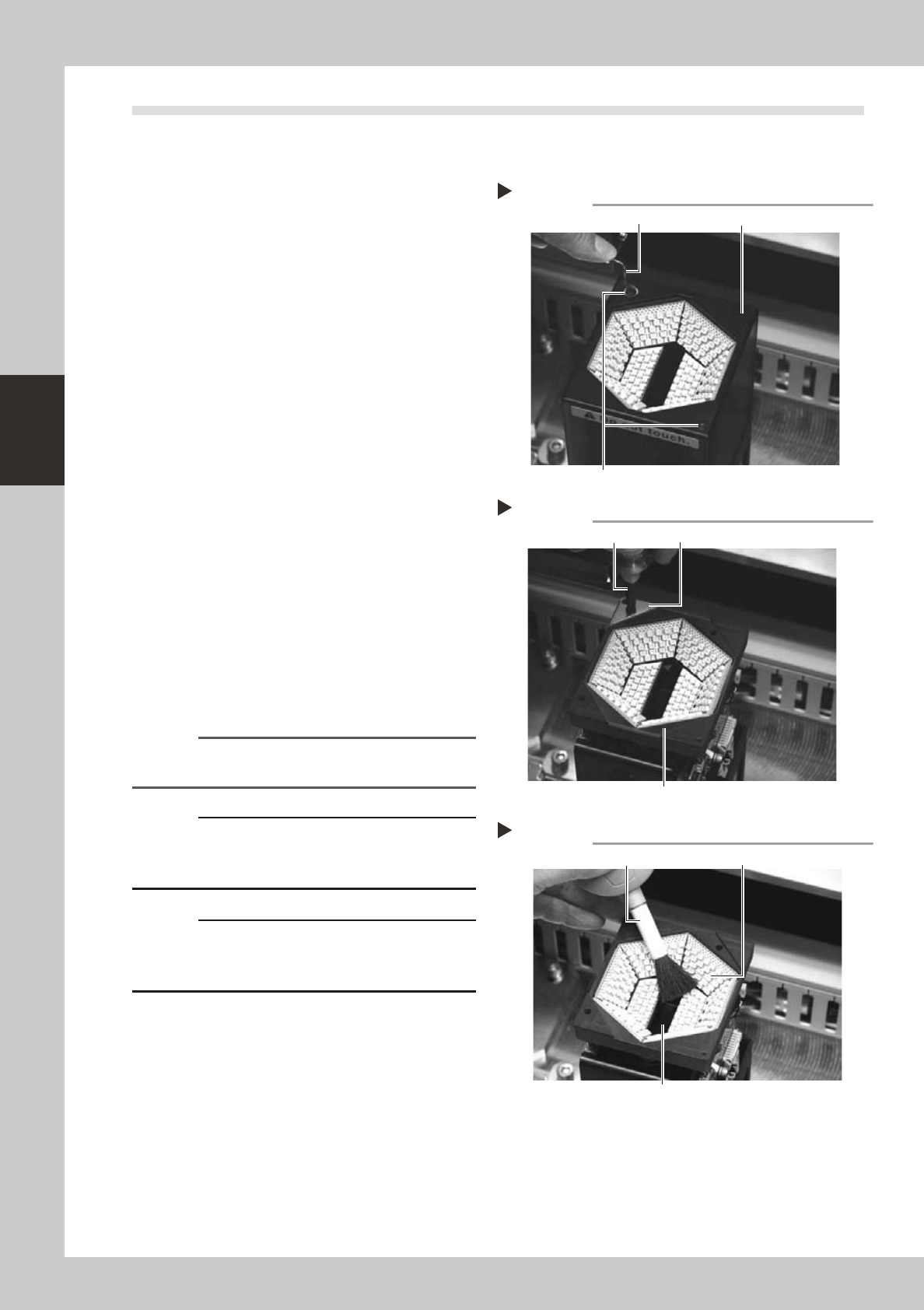3-33 3 Periodic maintenance items 5 Clean the multi-vie w camer a lens. The multi-view camera lens is located under the lighting unit. Remove the dust on the lens sur face using the lens brush or lint-free cotton swab. I…