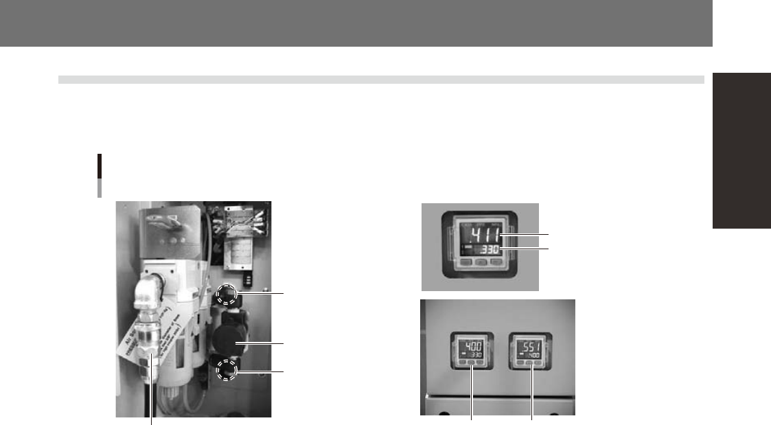 Air pressure setting for head (upper reading on left pressure gauge) : 0.40MPa to 0.41MPa