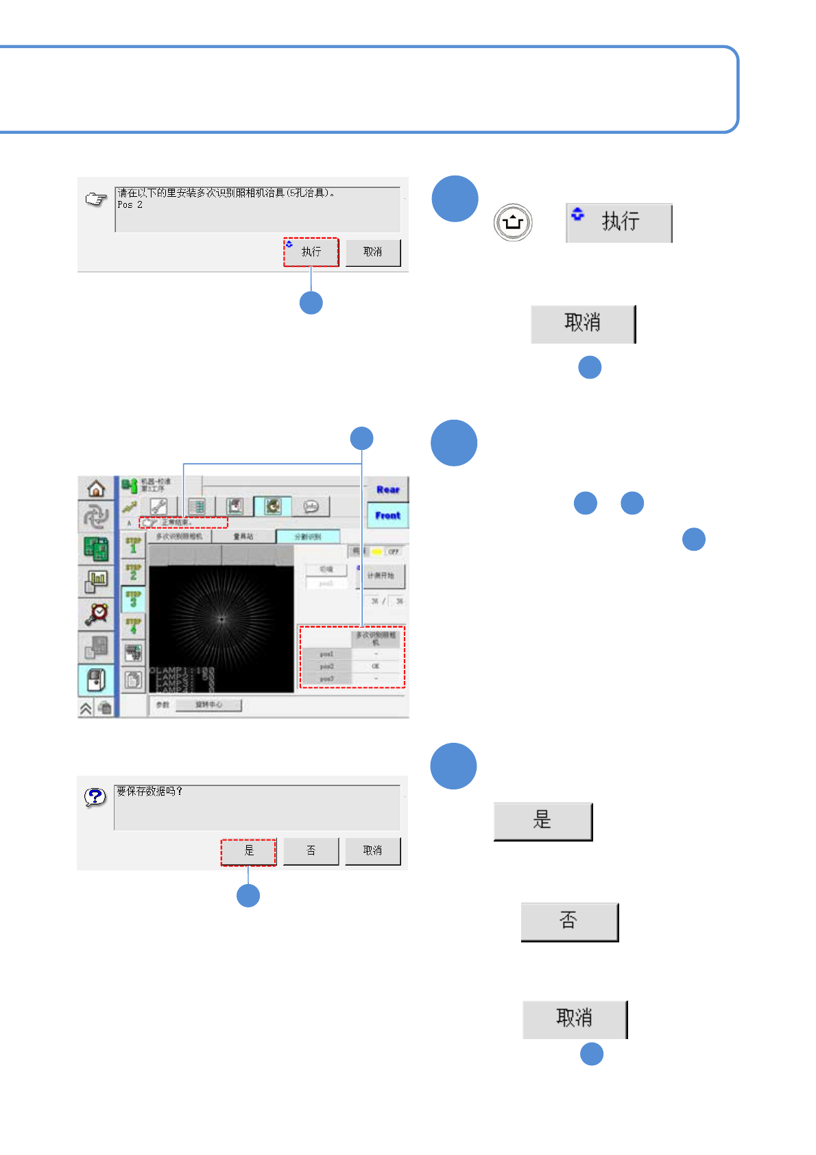 EJM9DC-MB-10E-0 0 NPM-W X/WXS 10-1 1 -3 伺服开关置于 OFF 14 13 工程师手册 10-1 1 15 16 伺服开关置于 ON 18 17 19 将显示所指定的其他菜单画面 分割识别 ( 选购件 ) 2 打开安全盖 取下多功能识别照相机治具 确认提示 ■无需取下多功能识别照相机治具时 ( 仍然是 的状态 ) 11 关闭安全盖 16