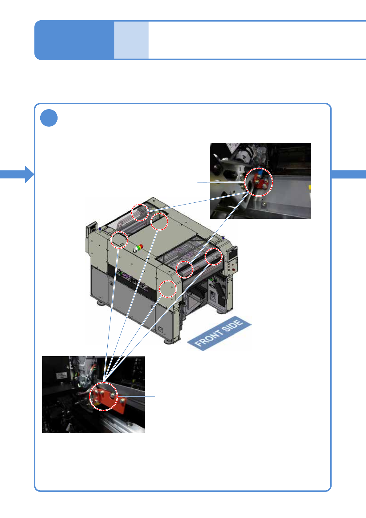 NPM-W X/WXS EJM9DC-MB-11E-0 0 11 - 3 -8 5 4 900 mm #1 #2 OK #10 #18 940 mm FRONT SIDE NG 885 mm NG OK 920 mm 水平测量器的设置位置 调整螺栓的位置 顺序 保持水平 ① 按下图位置设置水平测量器。 ●水平测量器 :2 个 ③ 用螺母固定。 ② 通过调整螺栓进行水平调整。 ●调节到 1 个单位 (0.02 mm/m) 以下。 ●调整螺…