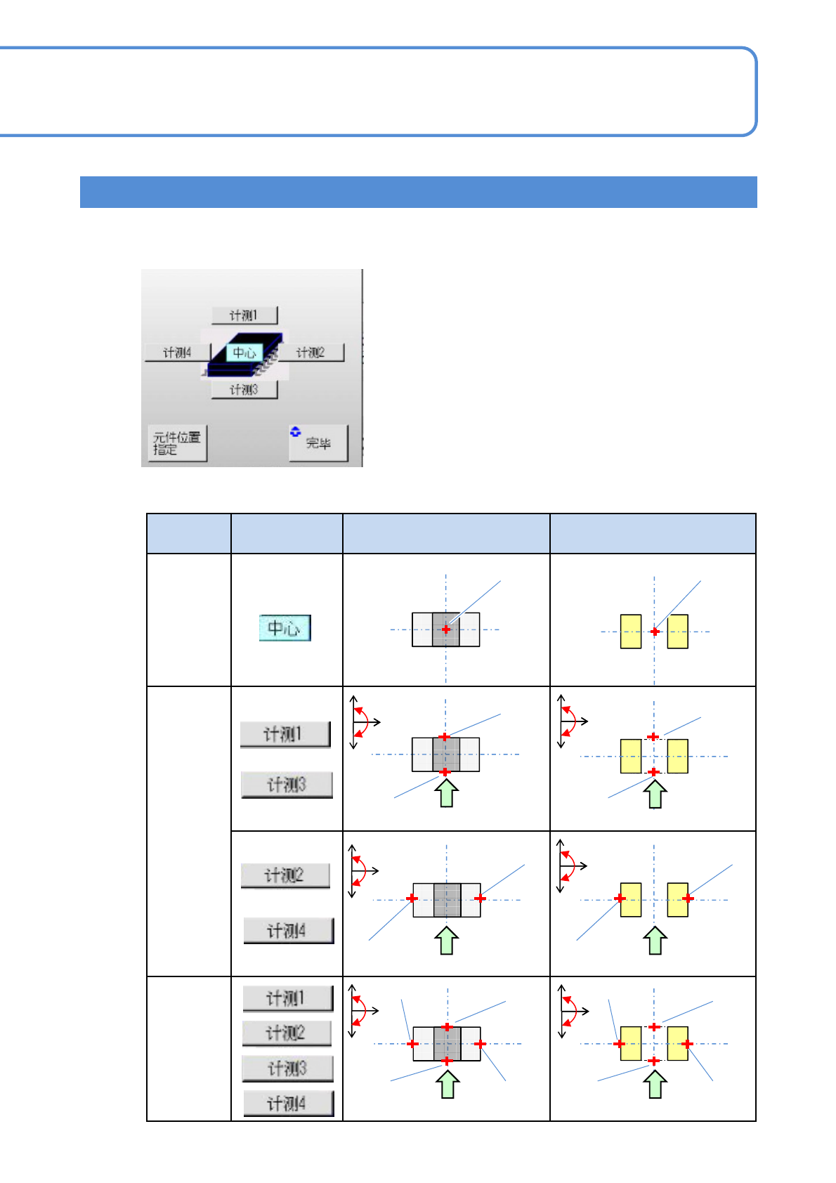 计测所选择的位置,算出元件的中心坐标或者基板上电极的中心坐标。