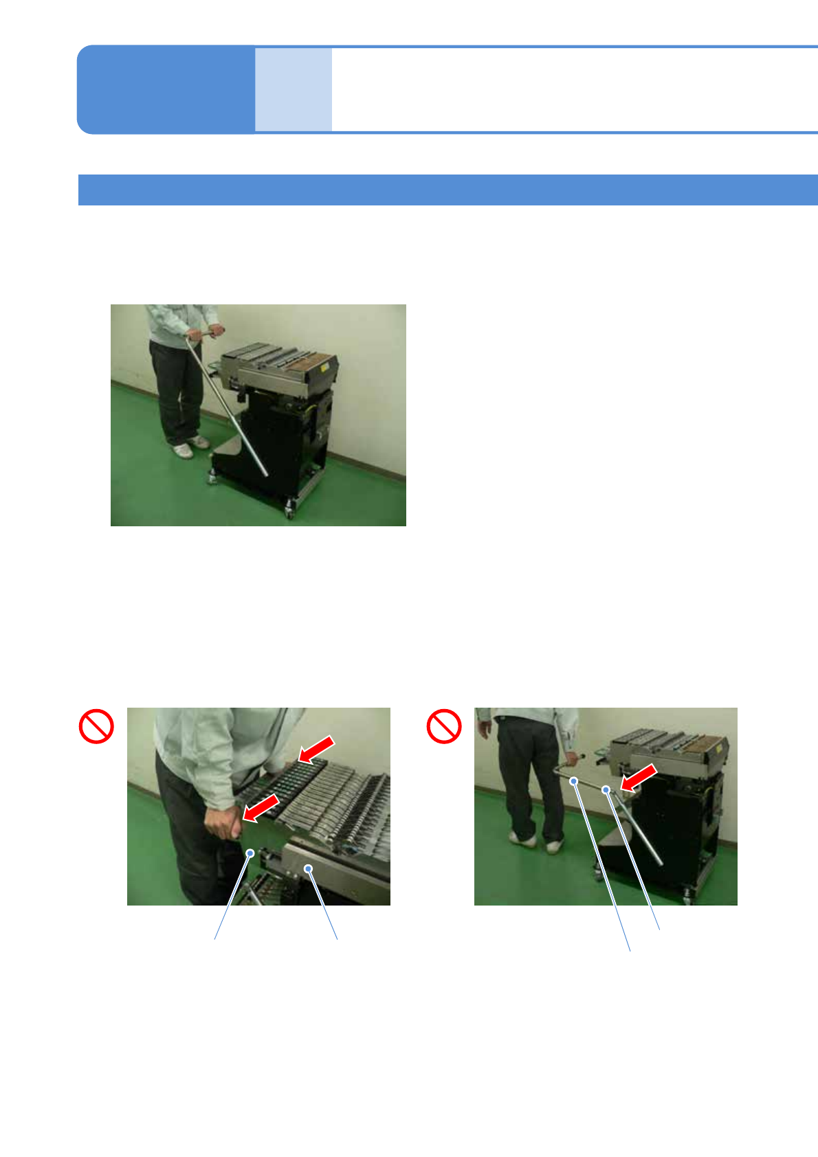 ■搬运交換台车时,请不要握持设置供料器的把手或者握持供料器工作台搬运。
