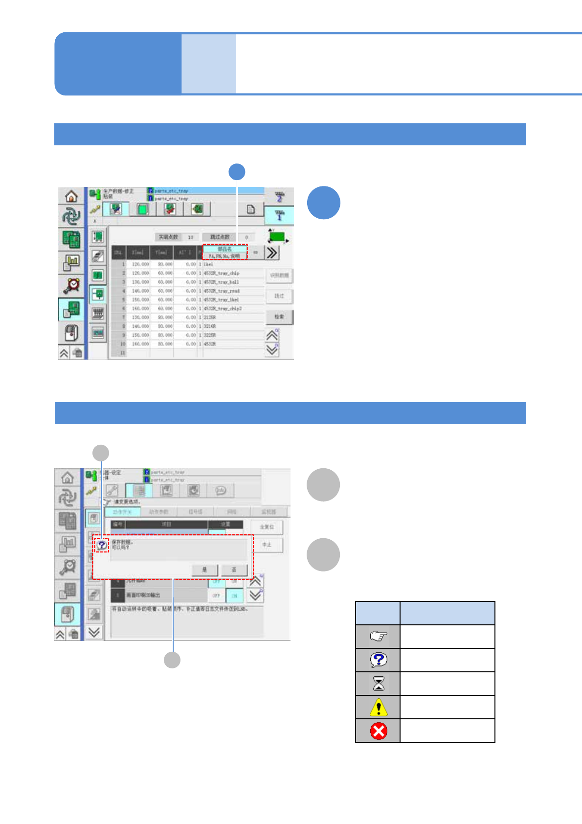 EJM9DC-MB-02C-00 NPM-W X/WXS ■输入时 1 1 2 3 2 3 2-2-1 -4 操作键的标记 选择项目 输入数值 ■删除一个数字时 ■删除所有数字时 ■取消输入时 输入完毕 ●重复标记 ( 右上 ) : 一直按下时,可以连续执行。 ●解锁标记 ( 左上 ) : 表示需要同时按 键。 ※ 如果接通设备电源后一次也没有实施过原点 复 位的话,则事前要实施全轴的原点复位。