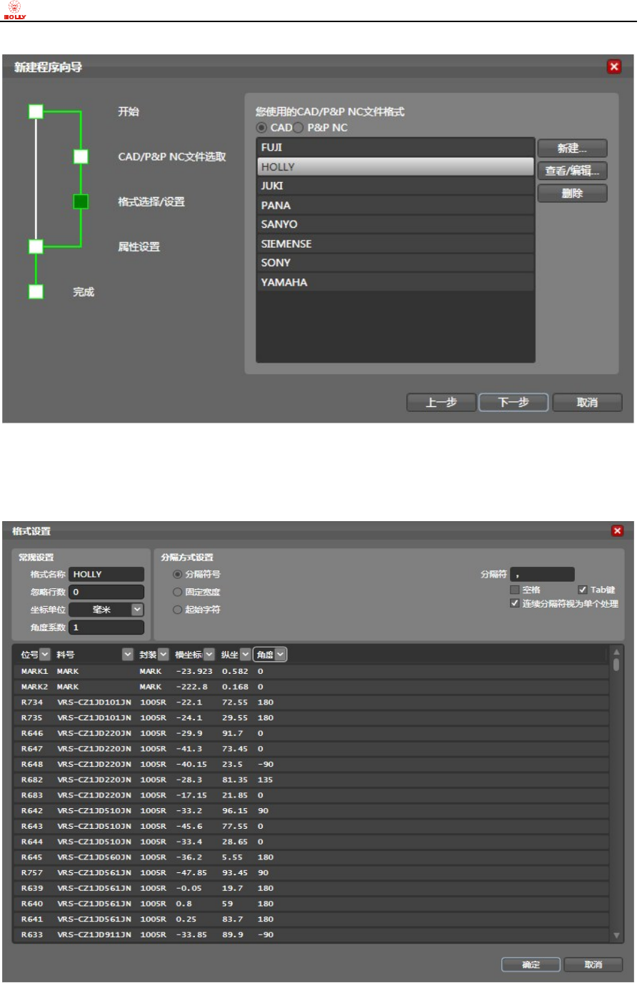 步骤 5): 选择 CAD 或者 P&P N/C 文件格式,如果列表中没有合适的格式,请点击“新建”按钮;