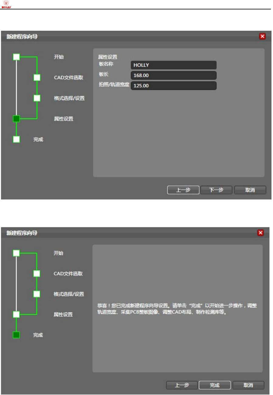 步骤 6): 屏幕返回到“新建程序向导”对话框,点击“下一步”,对所测 PCB 的属性(长度、宽度及板