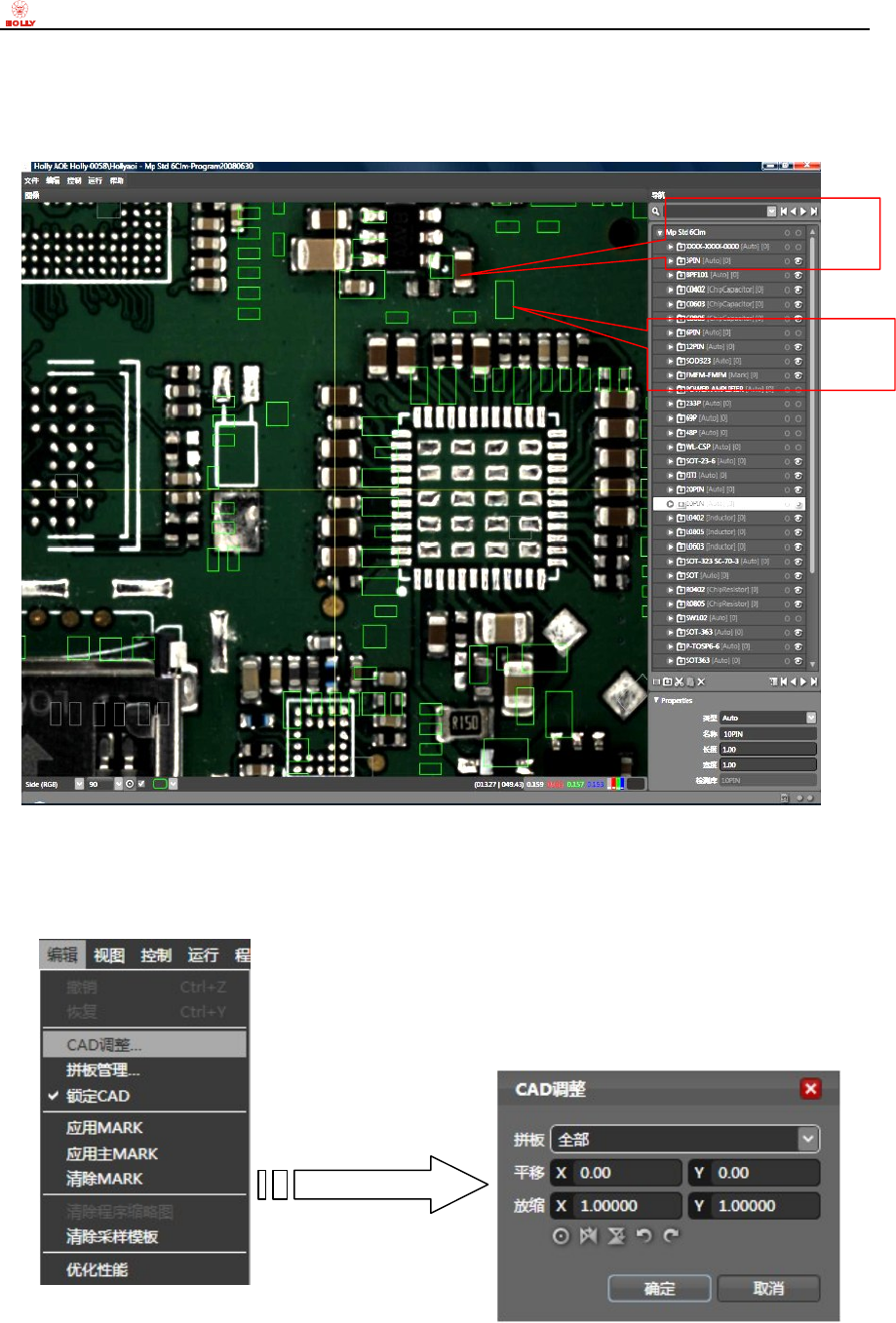 点击“赫立 AOI 系统软件”菜单项“编辑”下的“调整”功能选项,弹出“CAD 布局调整对话框”,该