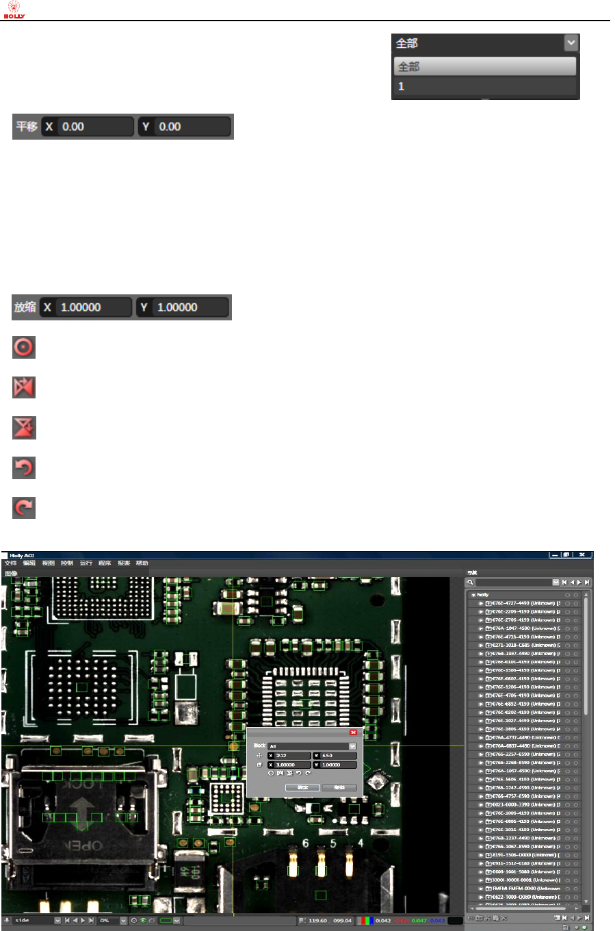 上海 赫 立 电 子 科 技 有 限 公司 在 线 型 自 动 光 学 检 测 仪 使 用 手册 第 2 1 页 共 6 4 页 表 第一 块 拼 板板 , 2- 代 表 第 二 块 拼 板板 , 依 次 类 推 , 如 右 图 所 示 : b. 此 项 用于 移 动 所有 拼板 或者 选 定 之 拼板内 所有 元件 窗口 的 X 、 Y 方 向 的数 值 , 可 同 时 支持 鼠 标 拖 动及 键 盘 输 入 两 种 模 式。 X 文…