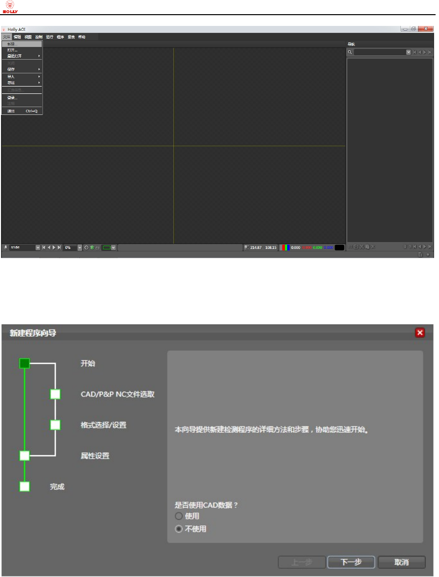 步骤 2): 在 弹 出的“新建程序向导”对话框内,按照提示选中“不使用”CAD 数据单选按钮,点击“下