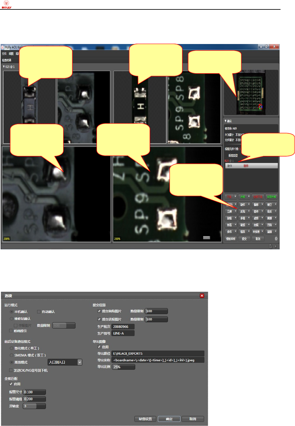 本机确认:AOI 独立运作,即进板、取像、检测运算后,确认动作只能在本机上完成。