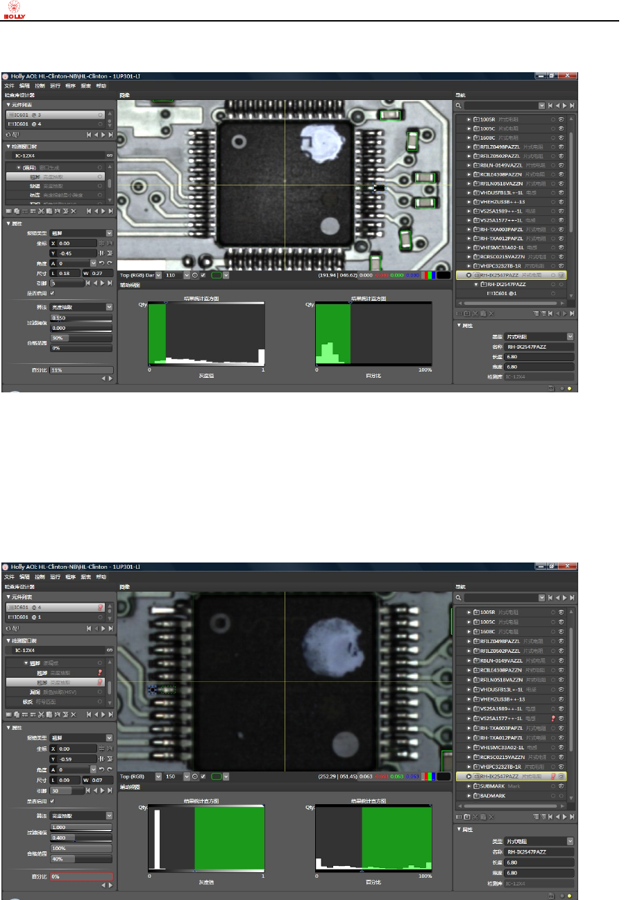 焊/空焊时,当前检测窗口亮度抽取亮度很亮的像素数占窗口内像素总数的百分比结果数值相对较大。