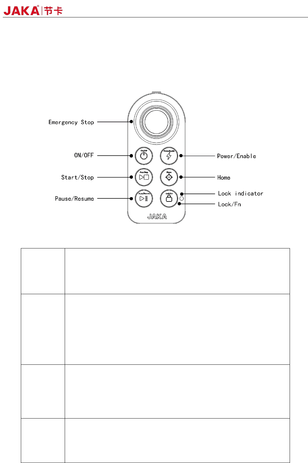 table 2-2. When the robot is running program, press the pause button could pause and resume the program.