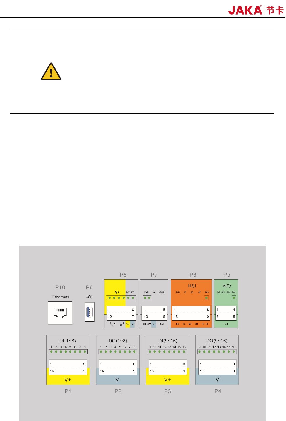 The USB interface and Ethernet interface are reserved for internal use and can be contacted by JAKA