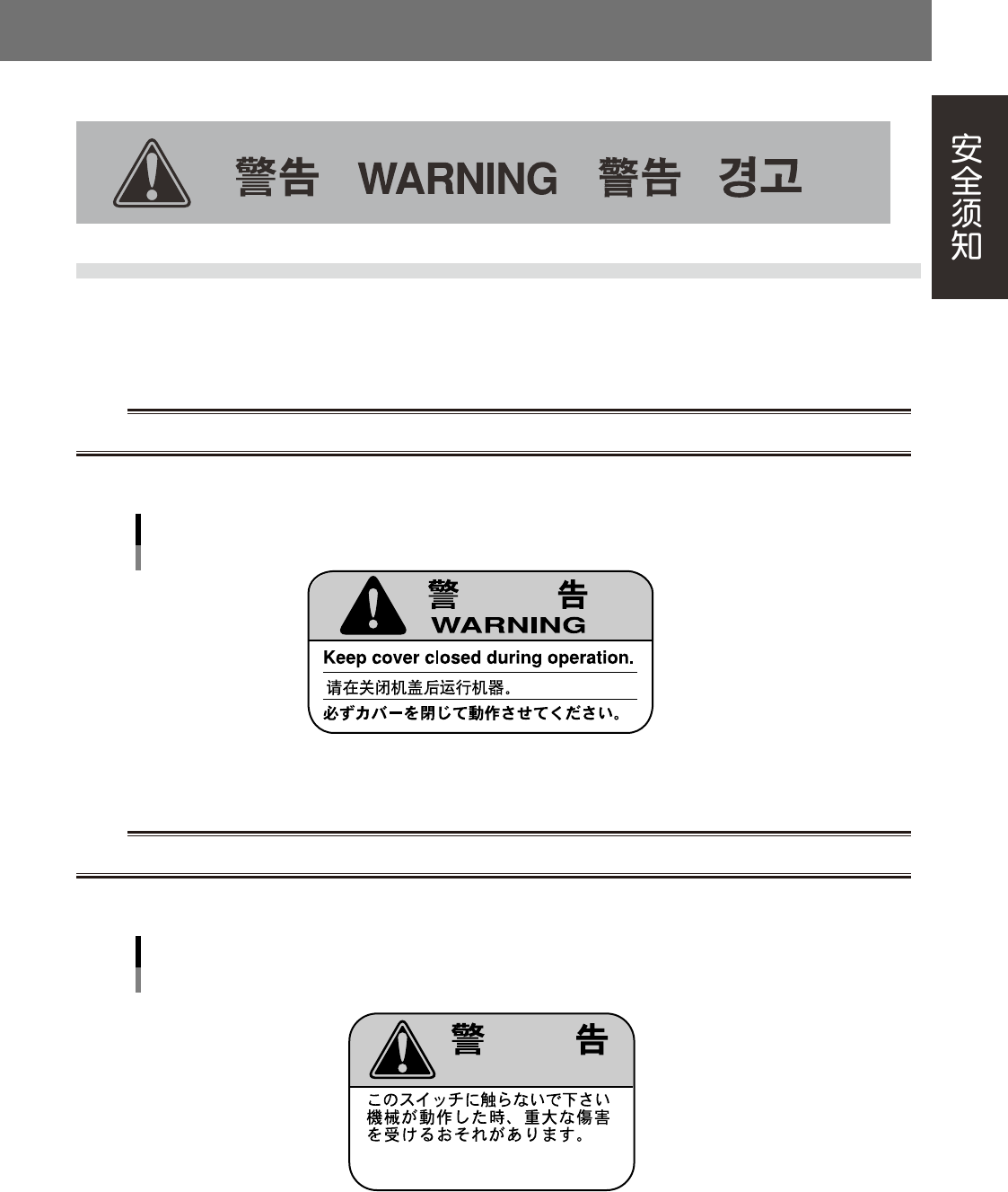 如在机盖开启的状态下运行机器,可动部碰触身体会有受伤的危险。