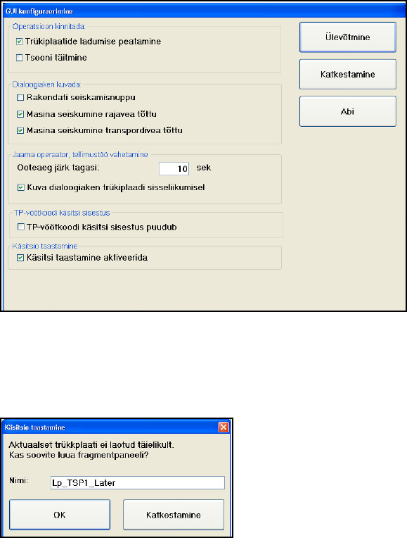 Æ Et trükkplaadi ladumist hiljem jätkata, vahetage autonoomrežiimi ja valige "Suvandid – Uus