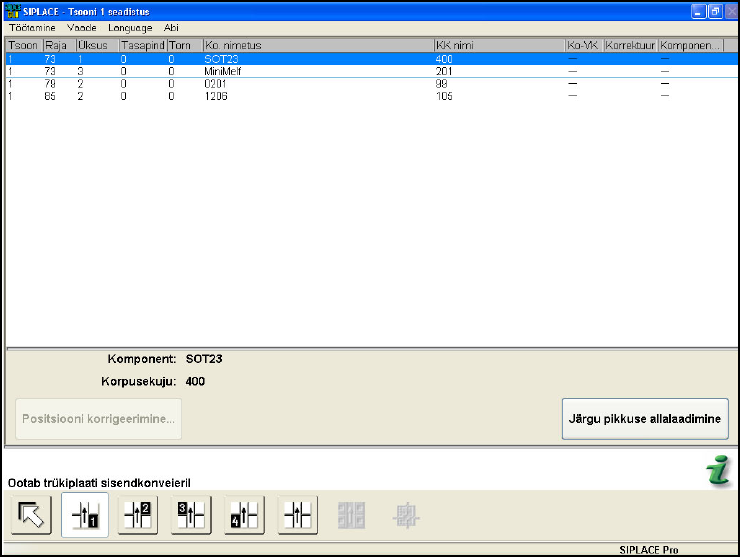Kui järgu pikkus on SIPLACE Pro's olemas ja Line Control'is on aktiveeritud suvand "Sööturite