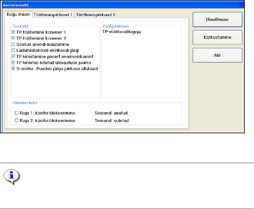 – Funktsiooni toetavad ainult lihtkonveieriga X-masinad.