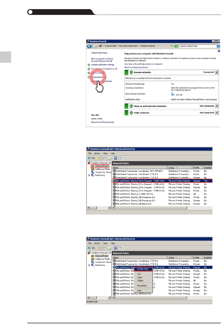 “File and Printer Sharing (Echo Request - ICMPv4-In)” 的 “Enable”