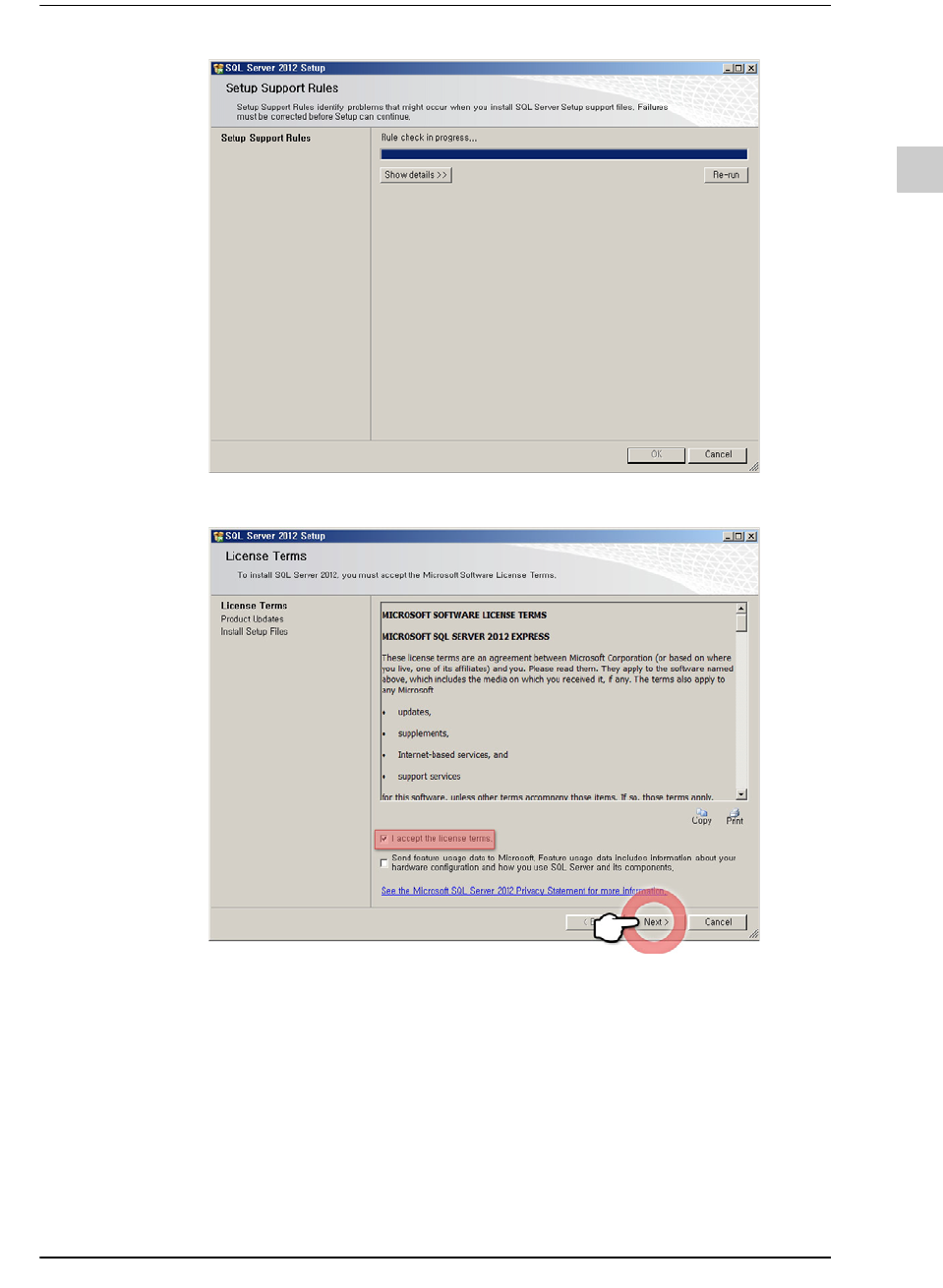 STEP2. 选择<I accept the license terms.> 复选框后,单击<Next>按钮
