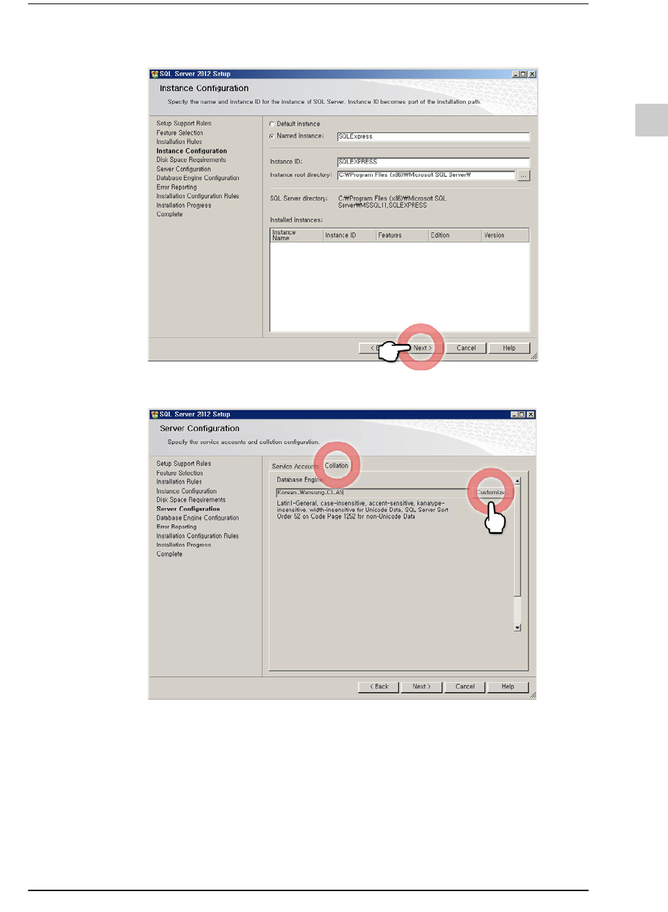 STEP5. 选择'Collation'选项卡后, 单击<Customize>按钮