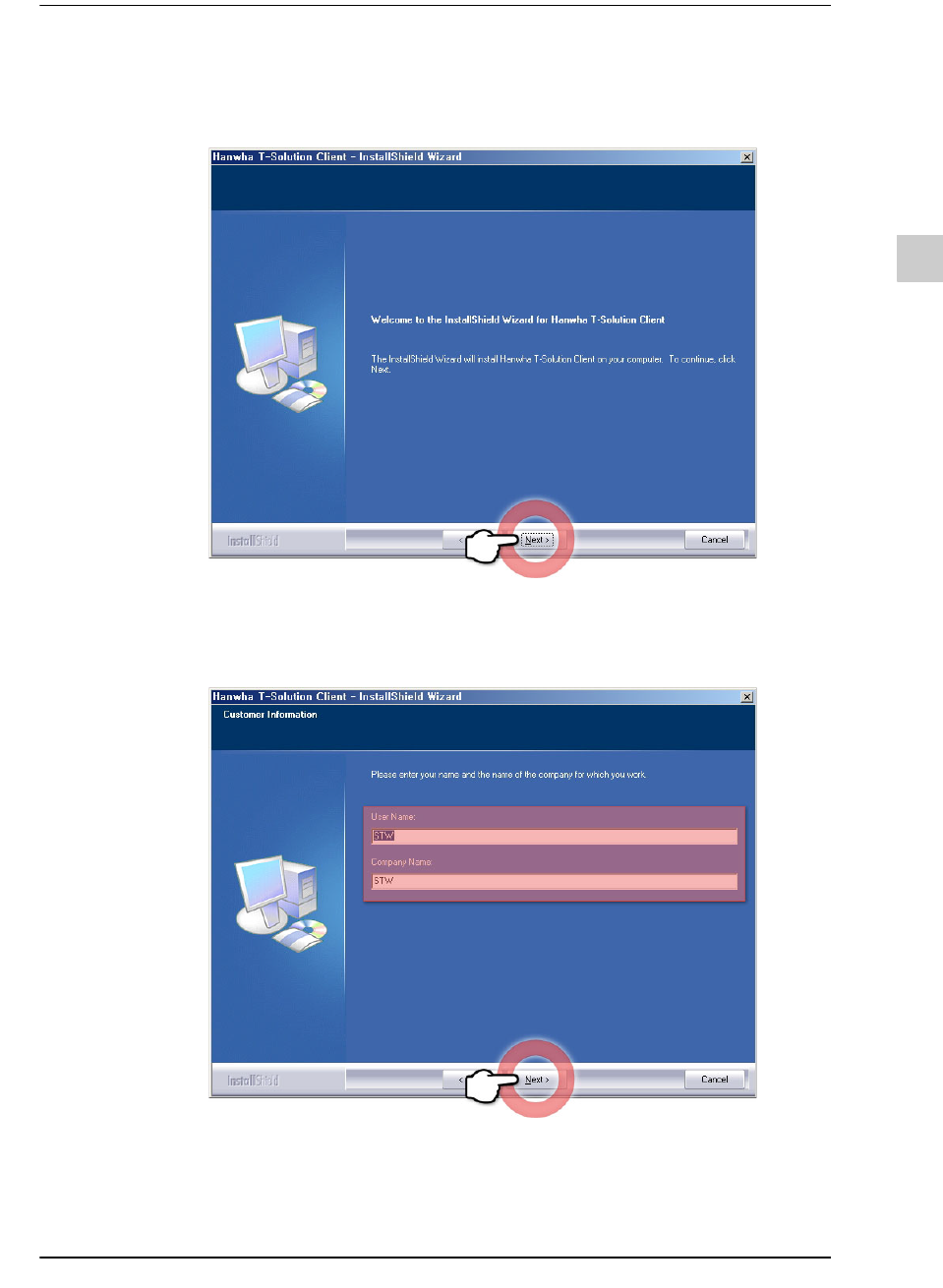 STEP2. 输入使用者名与公司名后,单击<Next>按钮