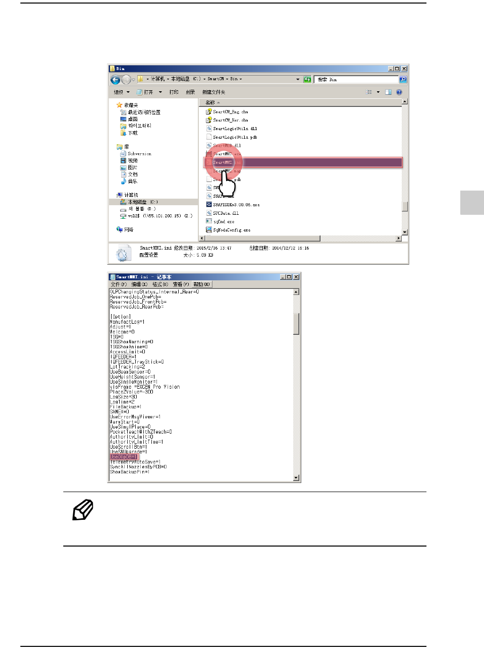 8-3 运行参考事项 STEP4. 在以 On e Part DB 运行的生产线上的设备查看 MMI 初始设置内容 。 (UseOlpDB=1) 备注 就算在 T- O L P 设置了使用主 DB , 只要生产线设备的 MMI 没有 设置成使用主 DB , 就不能以 One Part DB 运行该生产线