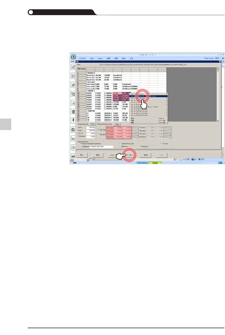 弹出式菜单选择“Set As Fiducial Top(x1,y1 ~ X4,y4)”后单击<下一步> 按