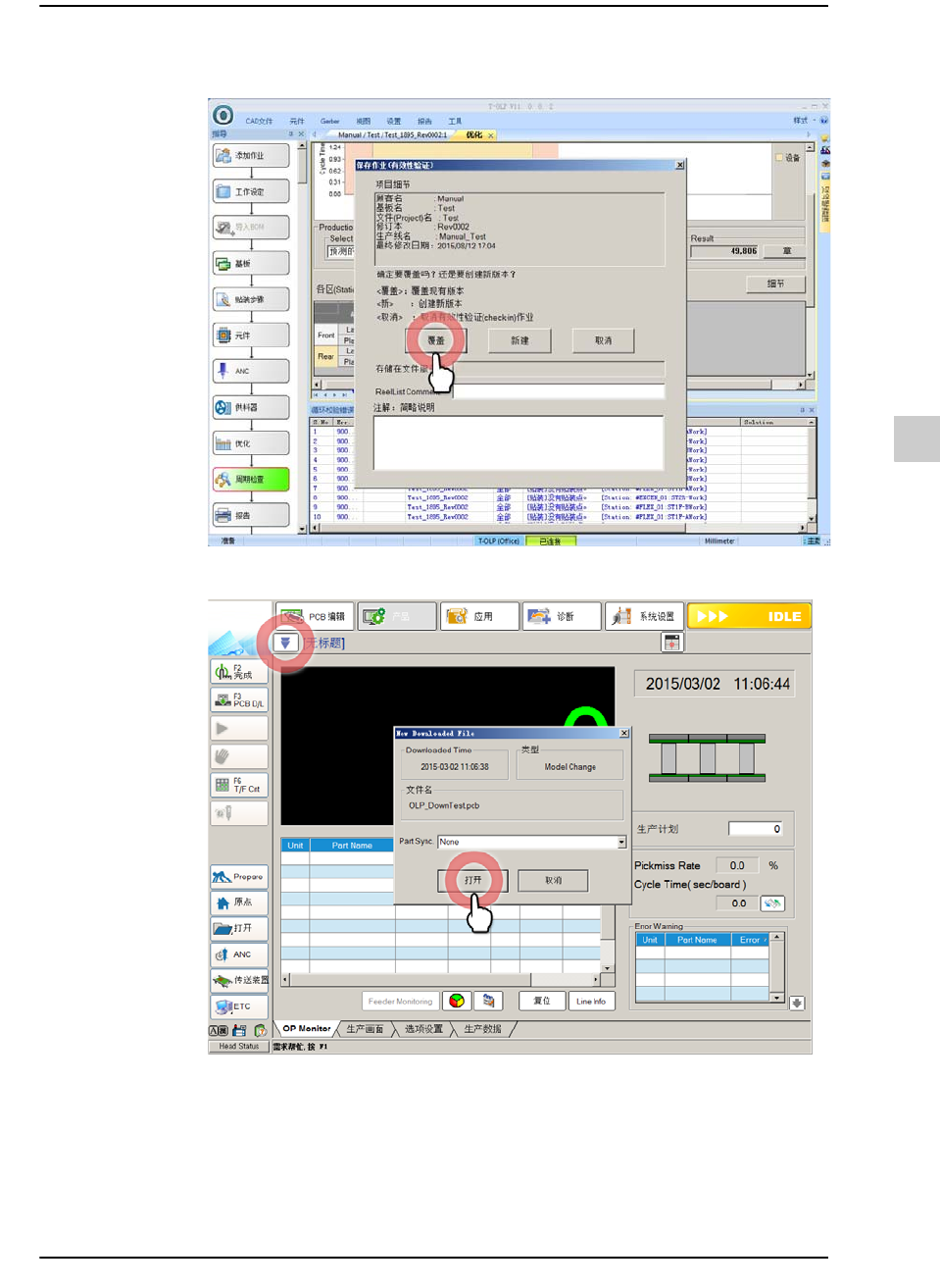 9-32 {TzYG|˅Gn {TzYG|˅Gn STEP8. 修改贴装角度及保存程序 (Rev . 2) STEP9. 在 T- O L P 打开程序 (Rev . 1)