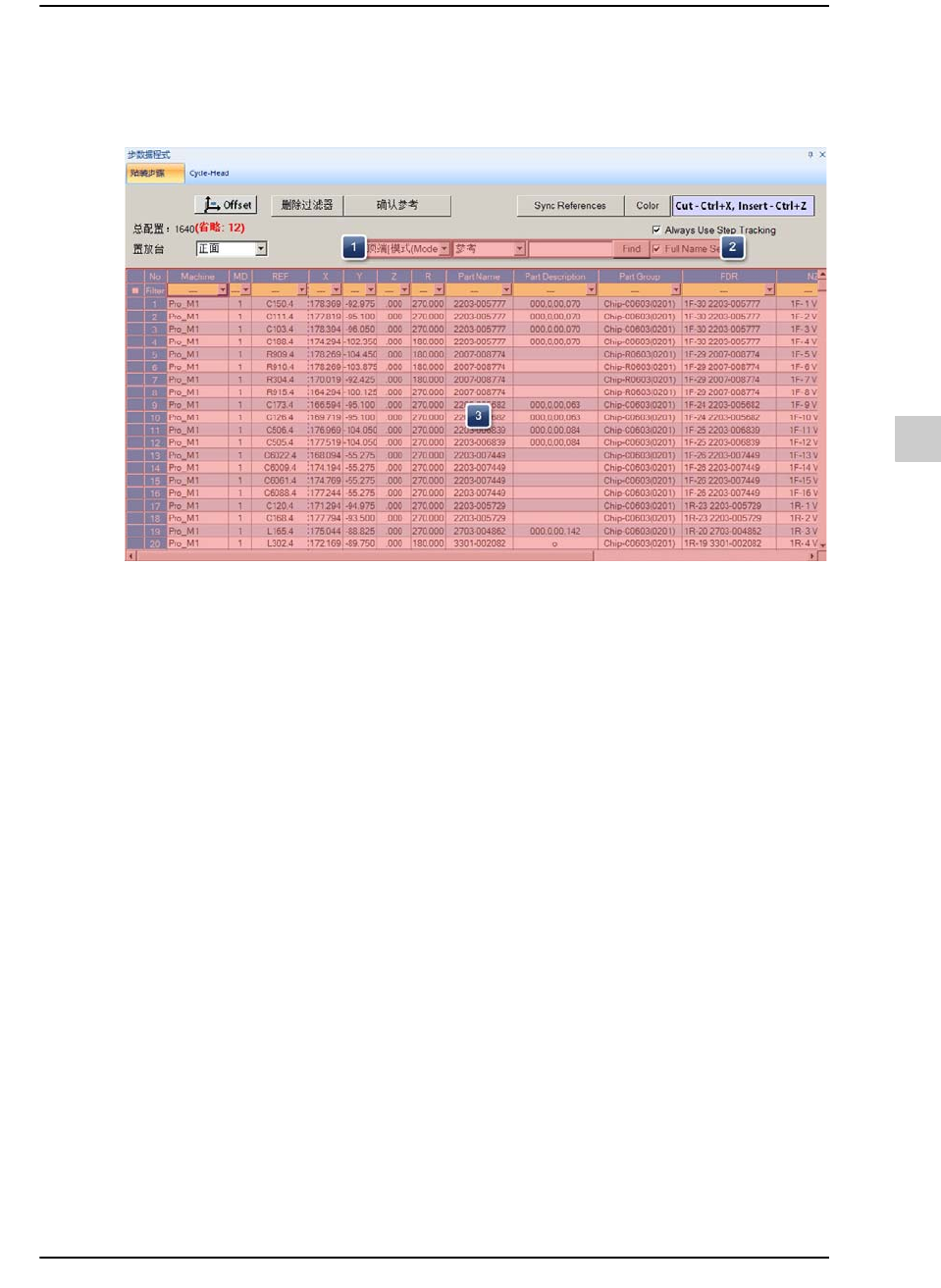 可以选择需要编辑贴装点数据的型号。该功能只会在混流生产的PCB 上激