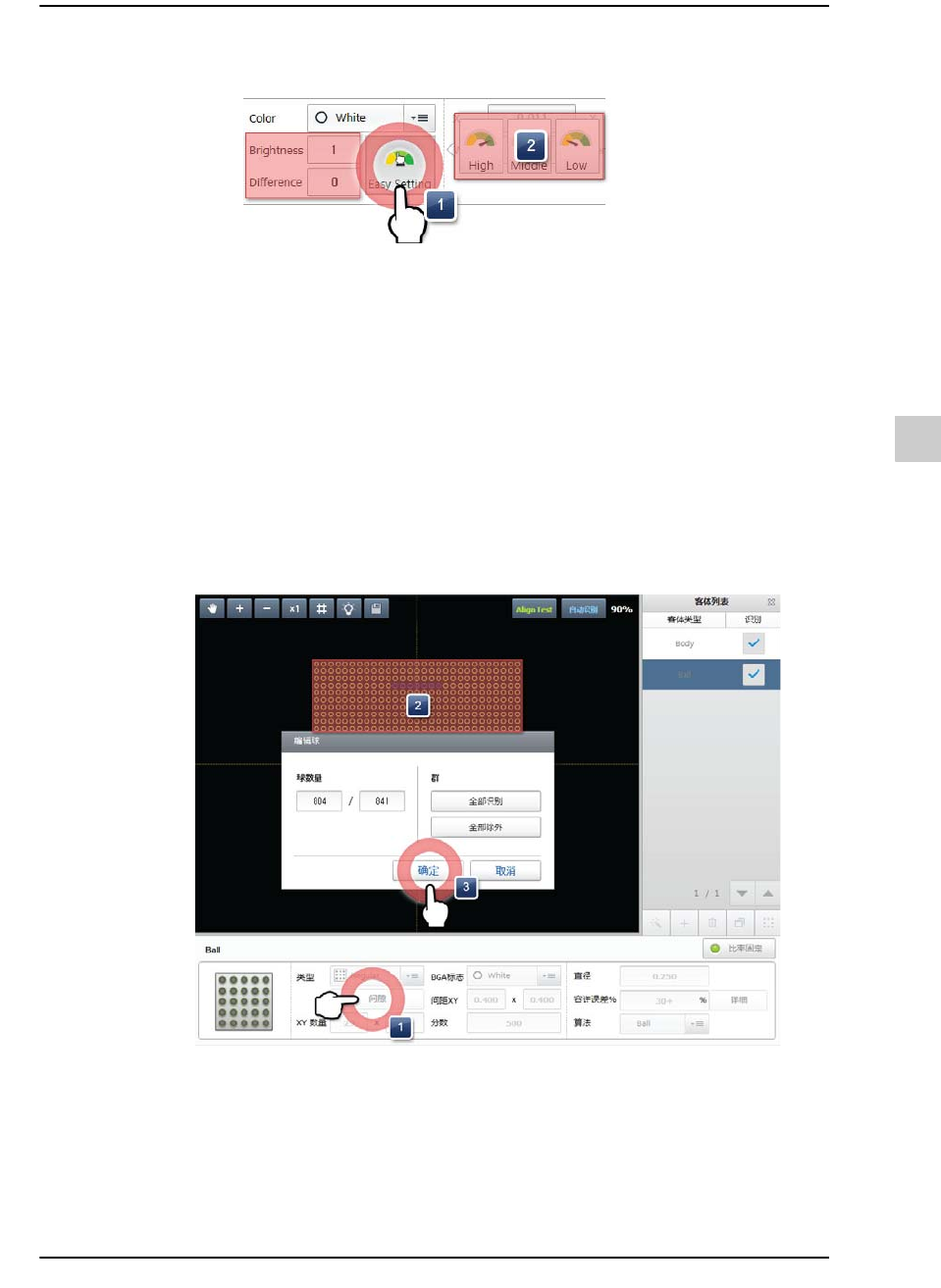 STEP2. 在视觉窗编辑球形状(黄色求:登记的球,蓝色球:无球,红色球: