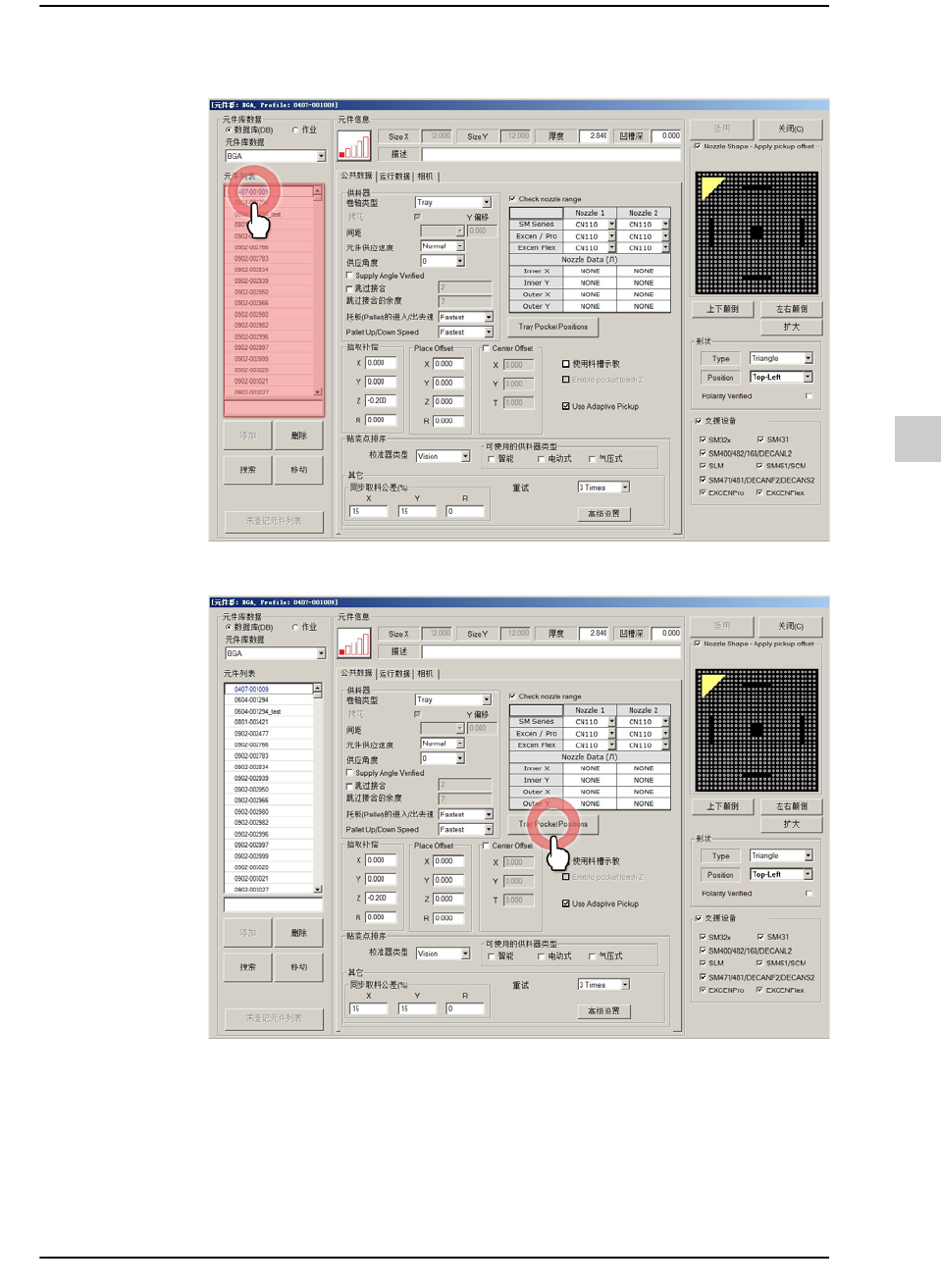 10-71 登记新元件 STEP3. 在 <Part List> 列表框选择使用盘式供料器的元件 STEP4. 单击 < 托盘基本信息 > 按钮