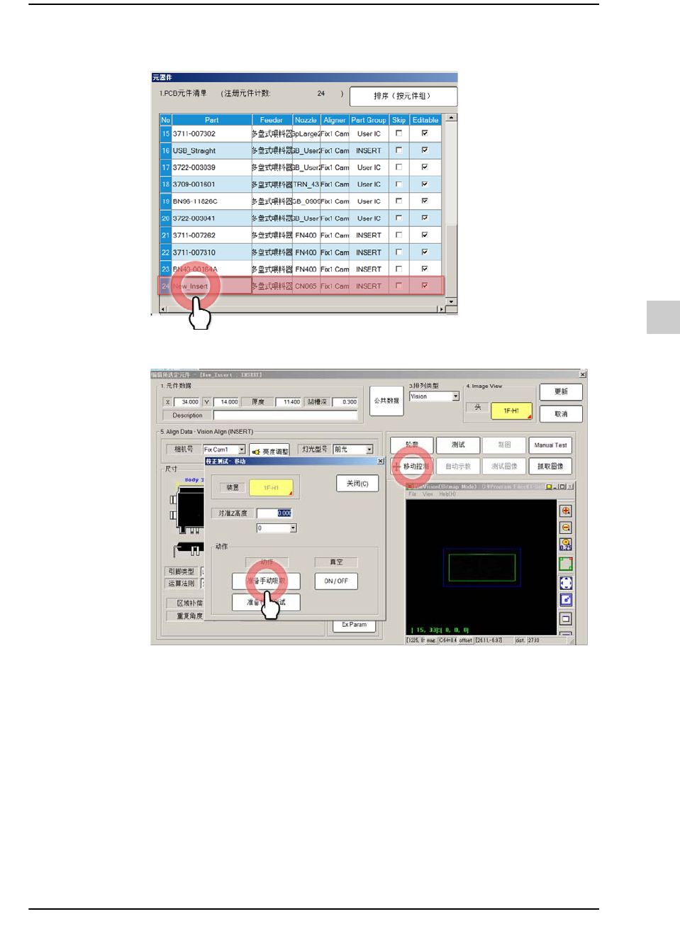 STEP12. 以手动方式利用吸嘴吸取需要识别的元件,需要时修改对准Z高度