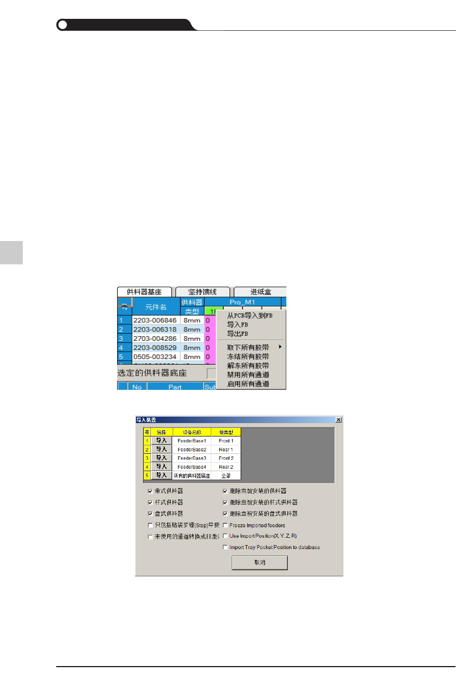 单击< 导入供料器底座>按钮,就能在供料器配置文件(*.sfb)导入生产线的一切