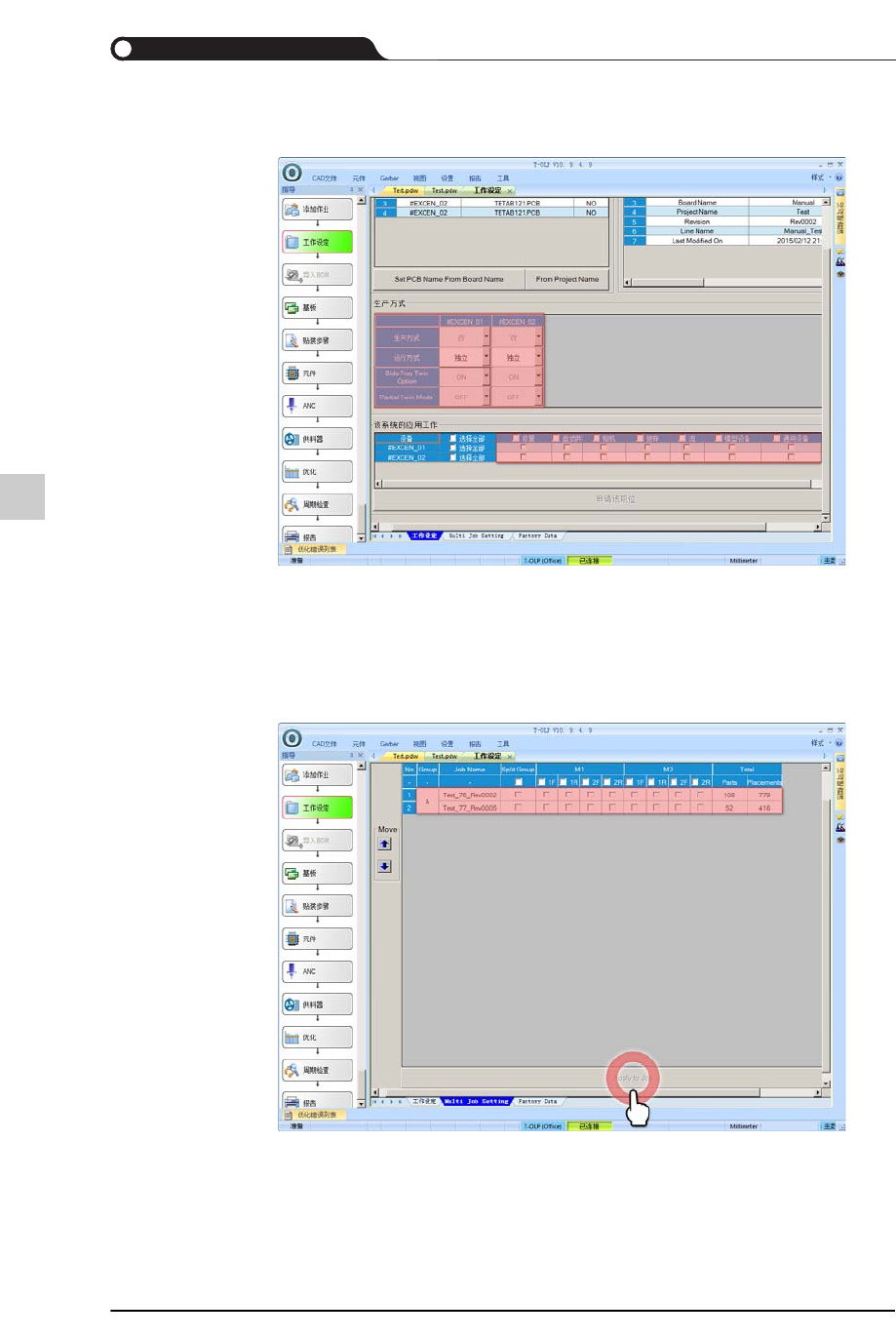 STEP3. 选择“Multi Job Setting”选项卡后,针对配置群及需要更换供料器的供料器