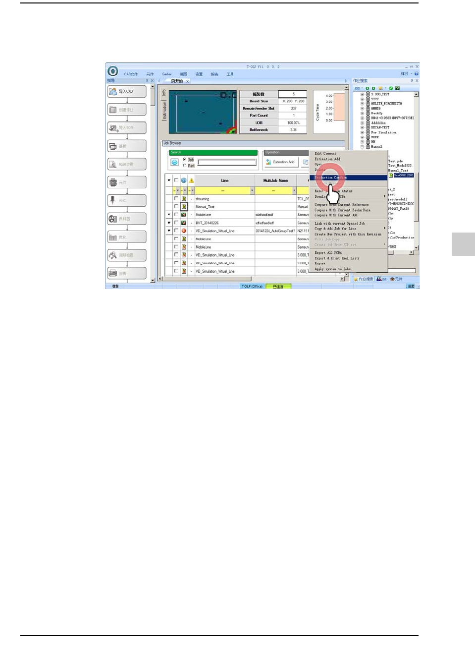 STEP2. 选择需要生产的型号的JOB文件并单击鼠标右键,在弹出式菜单按压