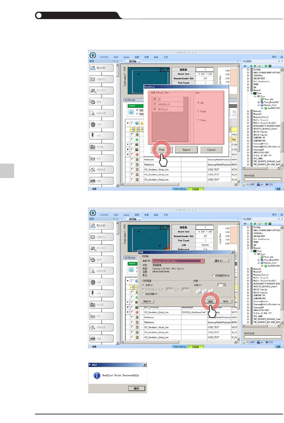 12-12 {TzYG|˅Gn {TzYG|˅Gn STEP3. 选择了需要输出卷轴列表的设备 与通道后, 单击 <Print> 按钮 。 STEP4. 指定了印刷卷轴目录的印刷机后 , 单击 < 确定 > 按钮。 文件印刷成功后,会出现下列弹 出窗口。