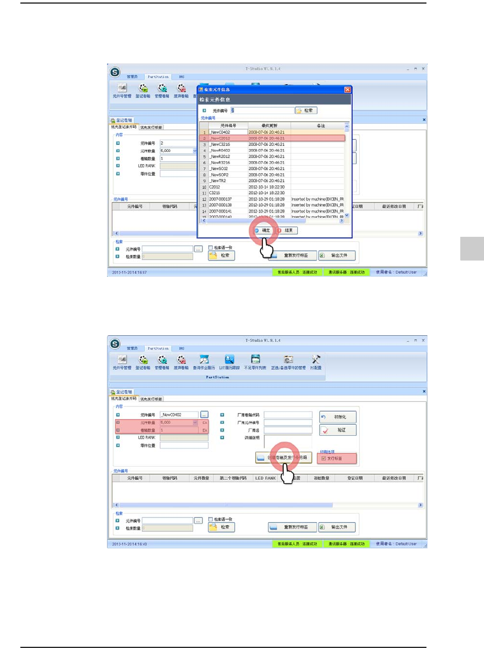 STEP5. 输入需要登记的元件的数量及卷轴数量后,单击<创建卷轴及发行条形码