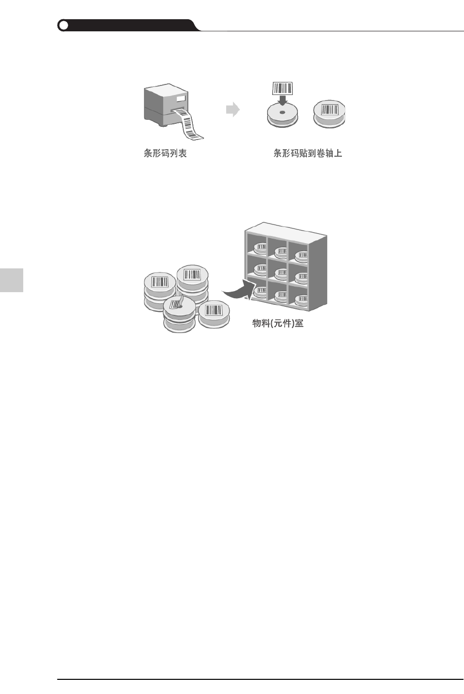 STEP6. 把条形码印刷机印刷的条形码贴到卷轴 上