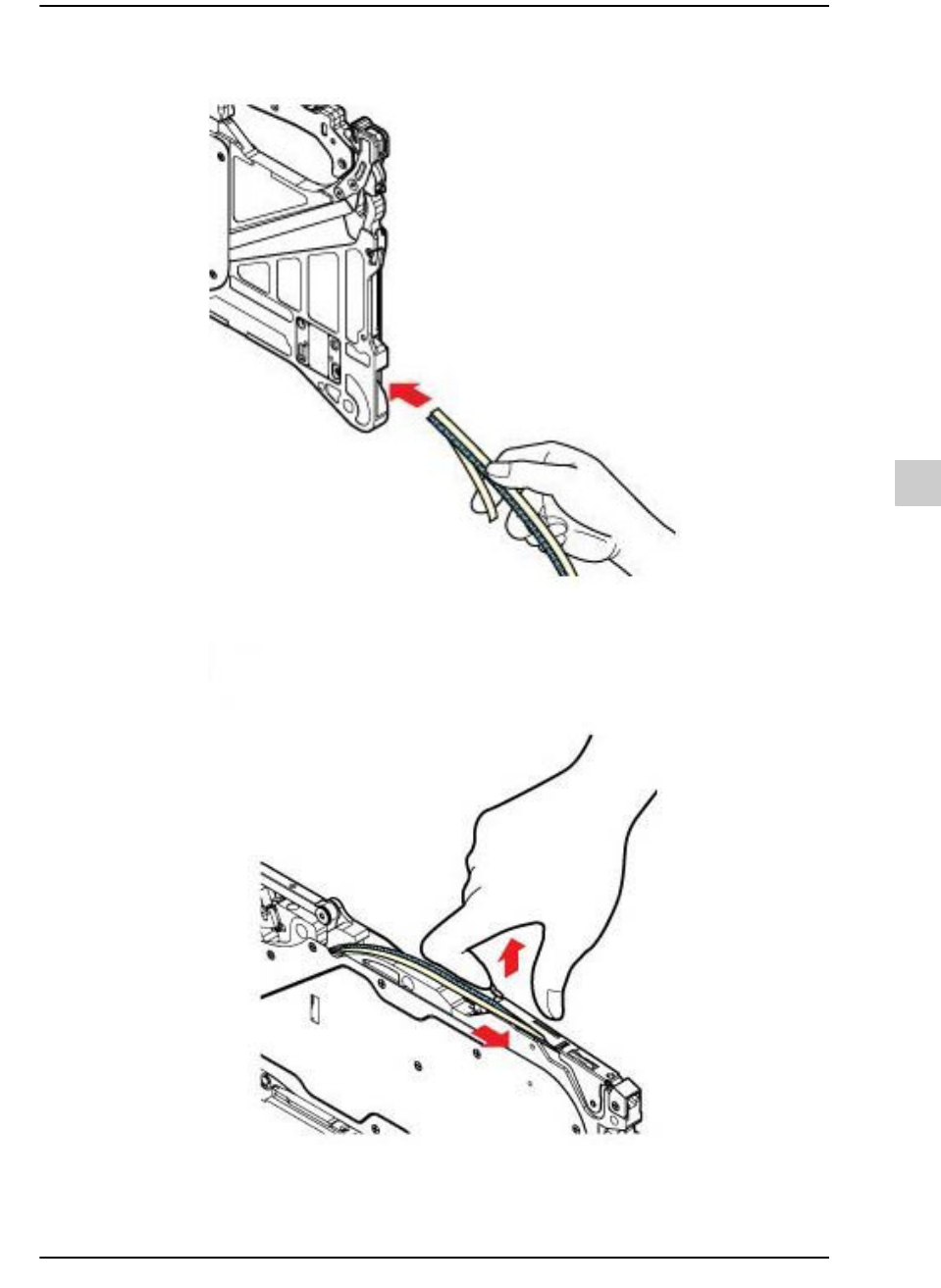 STEP5. 把料带投入供料器的料带引入口后推到料带导件的后方。
