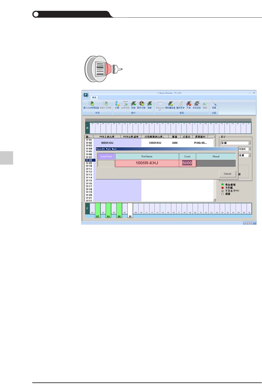 12-28 {TzYG|˅Gn {TzYG|˅Gn STEP6. 参考供料器配置信息把供料器插 入插槽并且对装载到该供料器 的料盘的 条形码进行扫描。