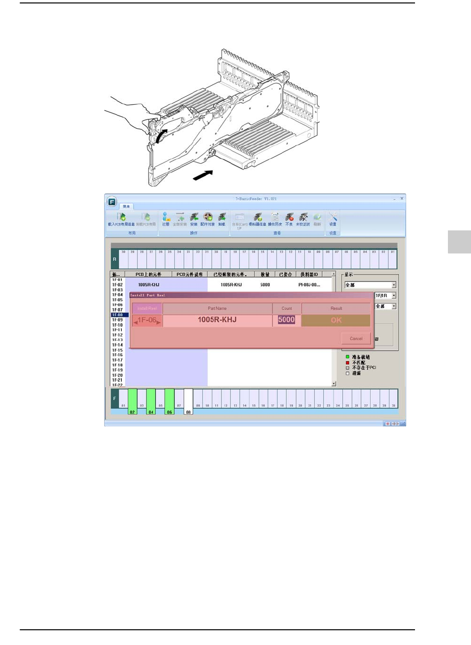 STEP8. 使用相同方式对所有的供料器安装料盘,确认安装了供料器的供料器底