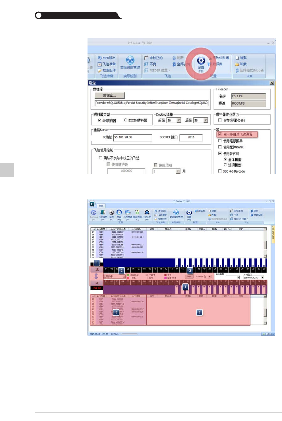 显示出目前所选择的PCB程序上设置的带式供料器的配置信息。