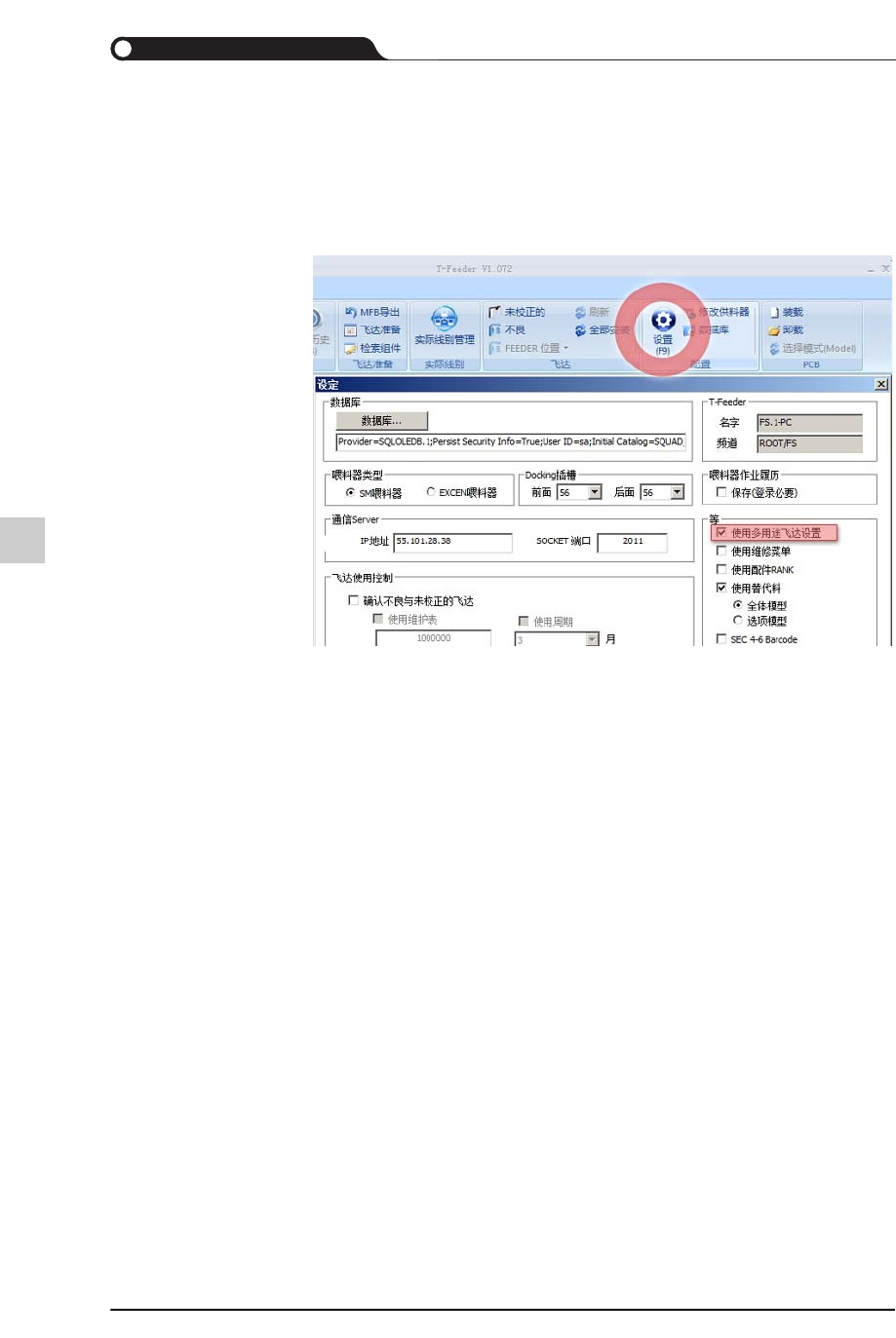 按压<设置 (F9)> 按钮后在“ 设定”对话框圈选了<使用多用途飞达设