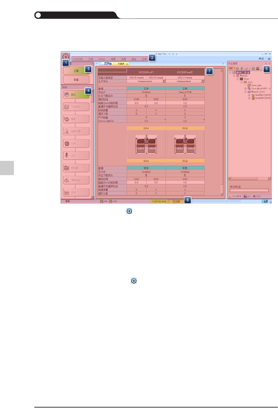 显示出T- OLP 的运行模式、T-OLP 与 COM Server及设备的连接状态。