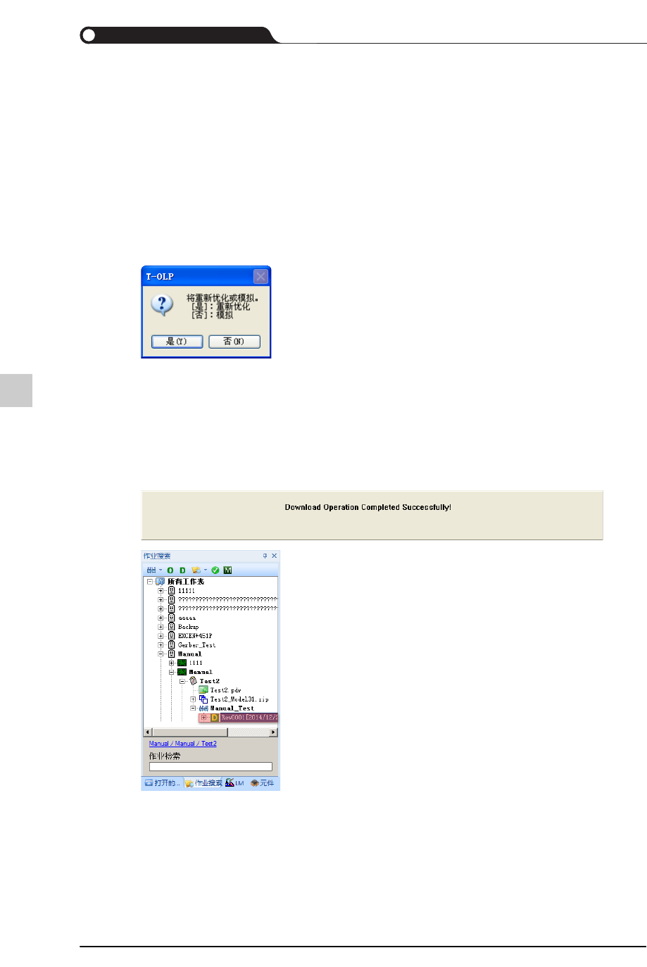 成功地完成下载后,将出现下载成功提示信息,作业领域的图标也会改变。