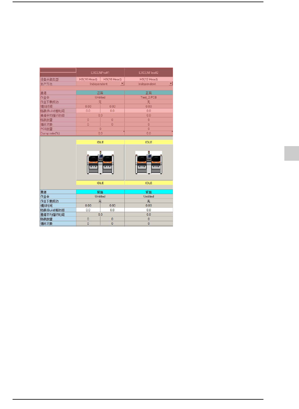 显示出和目前打开的JOB文件有关的生产线的生产信息。
