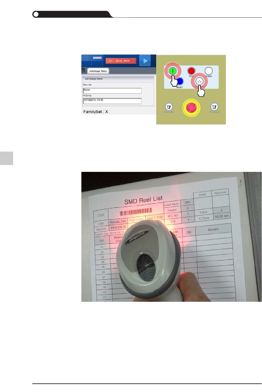 STEP1. 在设备的条形码扫描器扫描料盘列表的条形码。