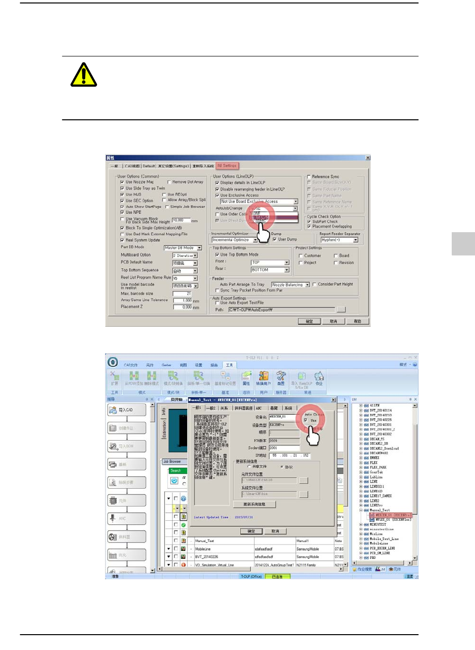 注意 利用自动更改生产型号功能时可以在生产线的所有贴片机自动更